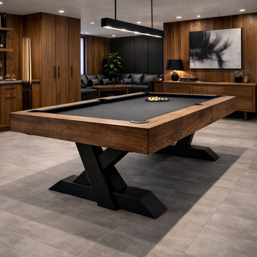 Biliardo dal design semplice e pratico; la linea è impreziosita dalla qualità delle lavorazioni e dei materiali oltre che dalle finiture e la cura di ogni dettaglio e componente.